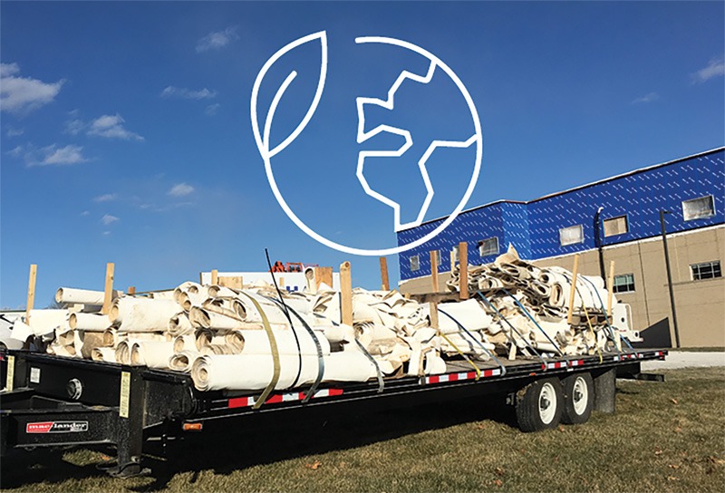 Post-consumer recycling of PVC roofing began in the U.S. in 1999, and the industry continues to make strides in increasing the recycled content in its products. Currently, roughly 453,592 kg (1 million lb) are recycled each year at the end of a PVC roof’s life. Estimates indicate that approximately 8 million kg (19 million lb) of PVC roofing membranes are currently available for recycling, based on historical volumes of installed roofs and the average lifespan of the material. The CFFA’s goal is to increase the number of PVC roof membrane recovery projects annually, resulting in a greater amount of material being diverted from landfills.